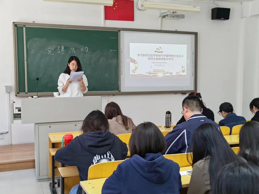 2023年4月25日下午15:00,嘿嘿漫画 学生党支部在行知楼114举行学习贯彻习近平新时代中国特色社会主义思想主题教育集中学习,集中学习由学生党支部书记孙小雅领学,学生党支部全体成员以线上线下形式参加学习。