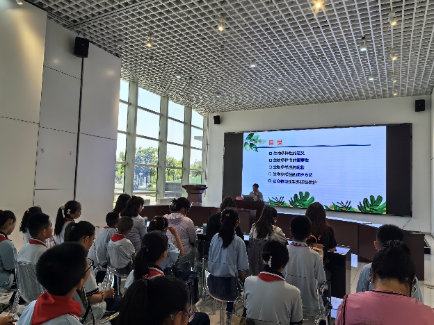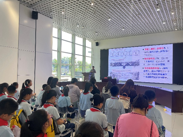 吴永胜副教授承担了本次活动的专题知识讲座部分。吴永胜老师分别从生物多样性的概念、重要性、现状、保护方法和公众参与等5个方面向参与本次活动的小学生介绍了生物多样性有关的基本知识。同时,围绕《环境保护法》、《自然保护区条例》以及讲座中提到的知识结合学生们的生活实际精心设计了40道竞赛试题,完成了知识竞赛环节。