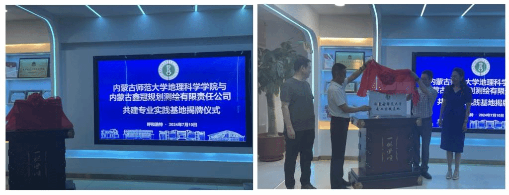 与内蒙古鑫冠规划测绘有限责任公司在内蒙古鑫冠规划测绘有限责任公司会议室成功举行校企合作共建专业实践基地揭牌仪式。