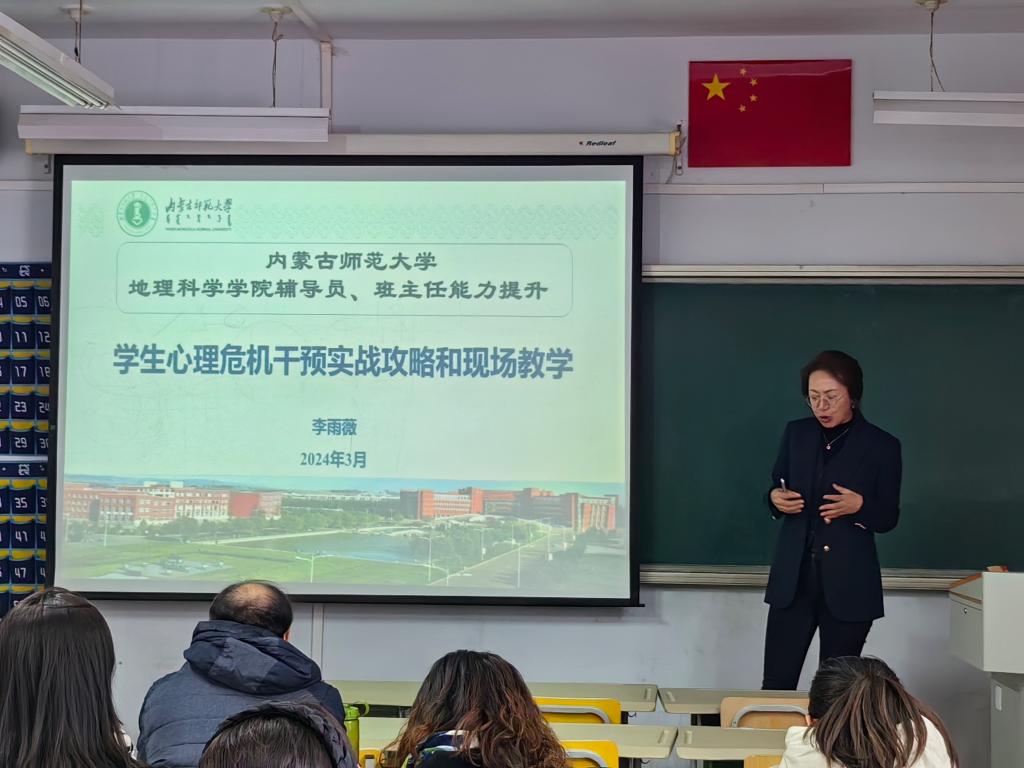 辅导员、班主任能力提升——学生心理危机干预实战攻略和现场教学”培训班,培训由学院党委书记李雨薇同志主讲。