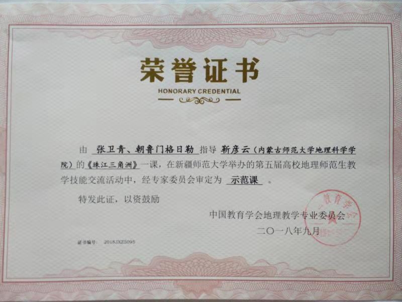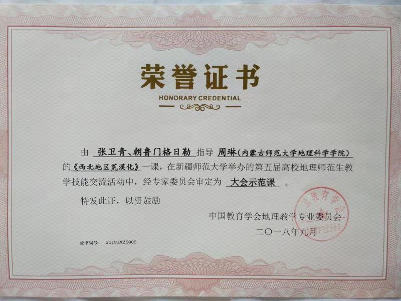 2017级学科教学(地理)专业研究生周琳同学获得 “大会示范课奖”并在大会现场进行展示;2017级学科教学(地理)专业研究生靳彦云同学获得“示范课奖”。