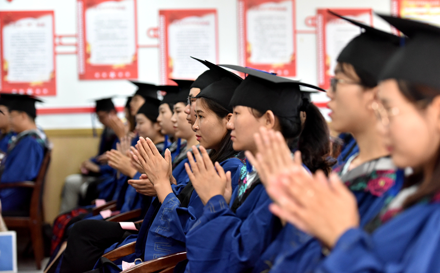 习主席的这段话全文1066字,背诵时长六分三十秒。高云峰副书记说,总书记讲话对于青年学生来说,讲的非常中肯、全面,作为毕业生,如果走出社会以后,能按照习主席爱国、励志、求真、力行四点要求做,一定会成为对社会、对民族、对国家有用的人。他告诉笔者,背诵能够引起学生注意,从而能够认真去聆听。此外,背诵本身表明了一种学习态度,通过这种方式告诉毕业生,学习永远在路上,应时刻持有这种态度。