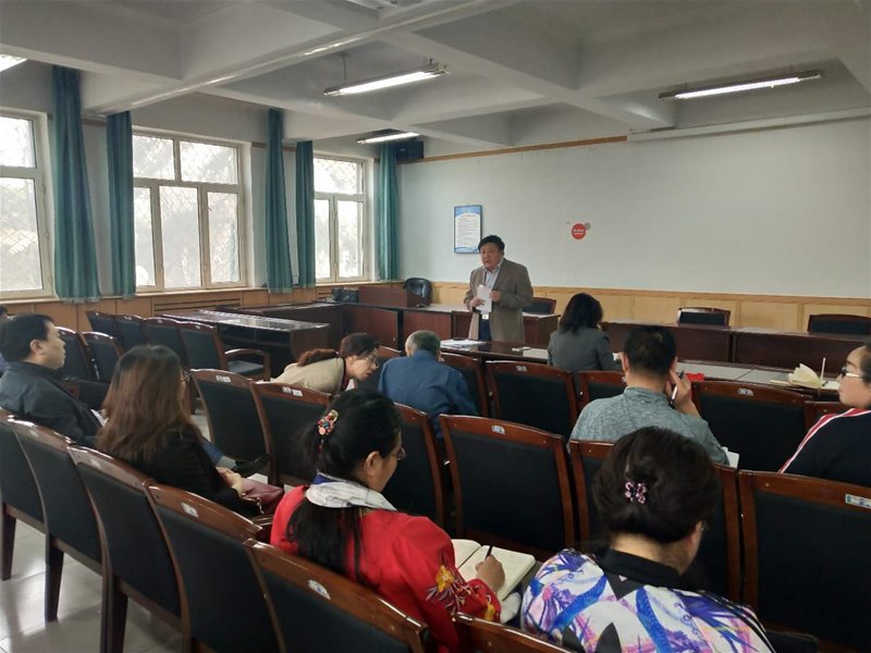 赛罕校区文史楼二楼一号会议室召开了2018年第三次全体教职工大会。本次大会由学院党总支副书记李雨薇主持。