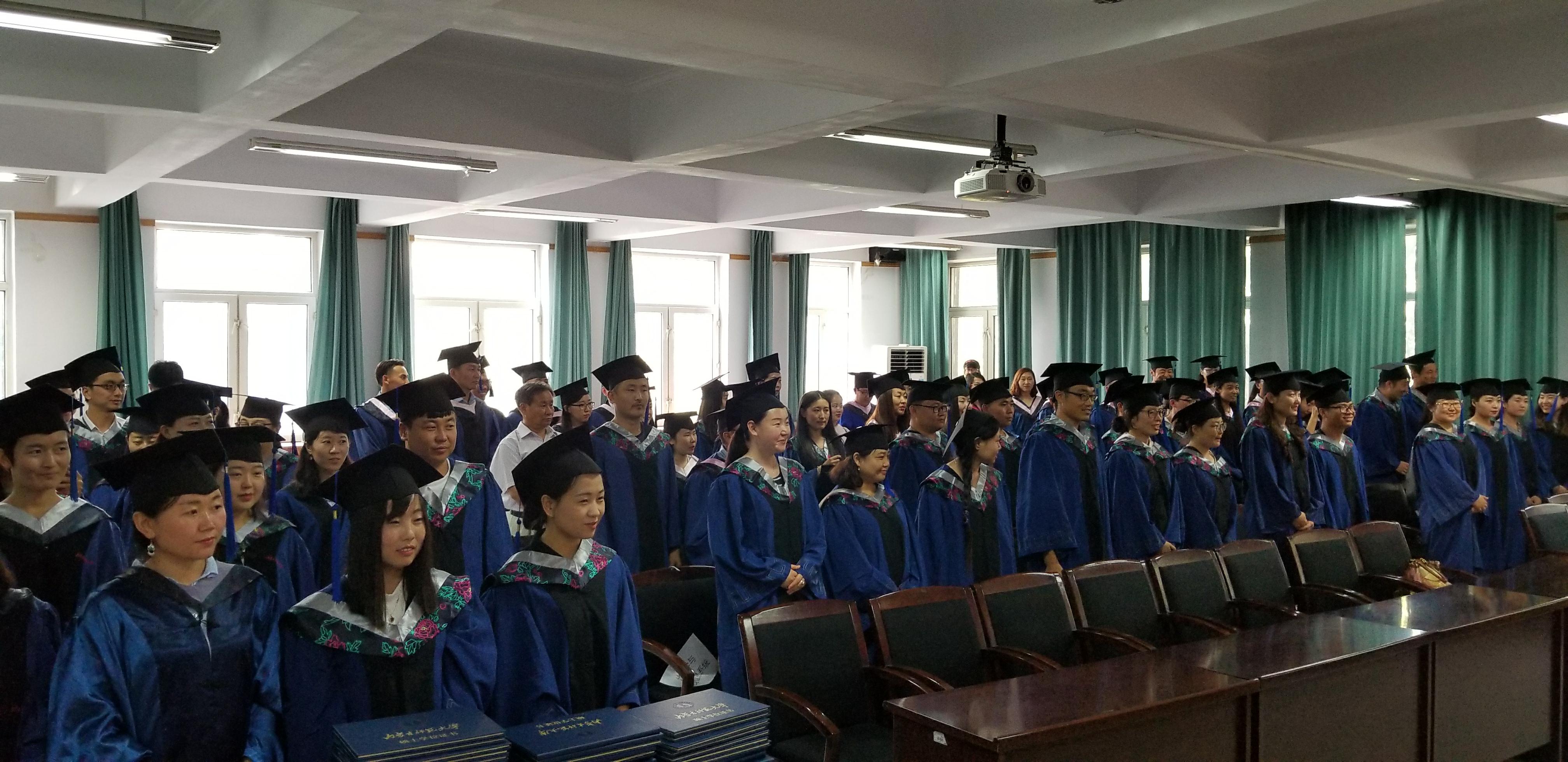 院长包玉海教授讲话,鼓励研究生同学们继续深造;校党委副书记、纪委书记高云峰研究员讲话,高书记用他的亲身经历激励同学们努力学习,愿他们前程似锦。最后进行了学位授予仪式并合照留念。
