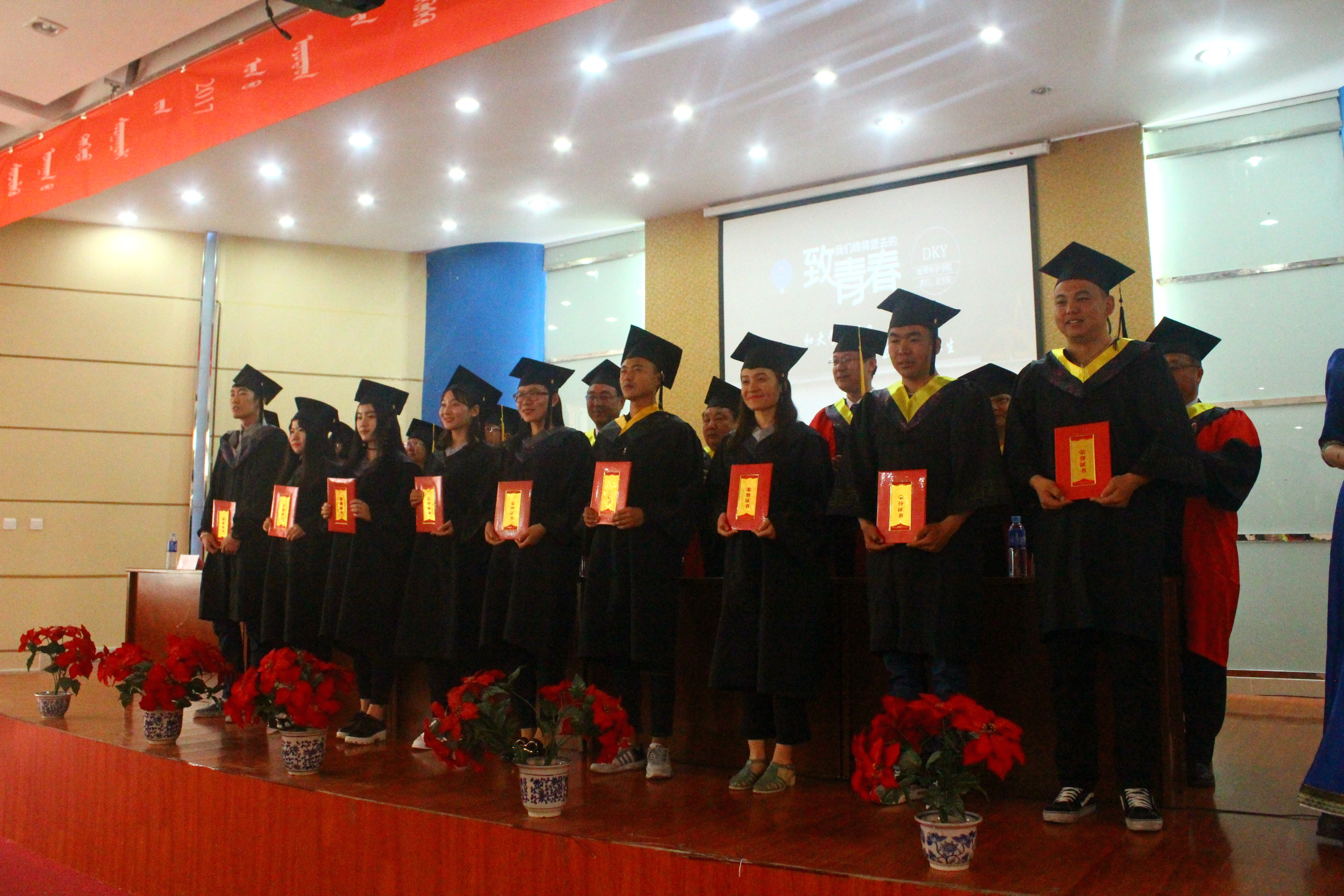 “校歌”的歌声中圆满落幕,出席典礼的全体领导和毕业生亲切合影留念。