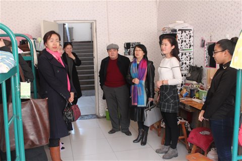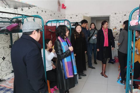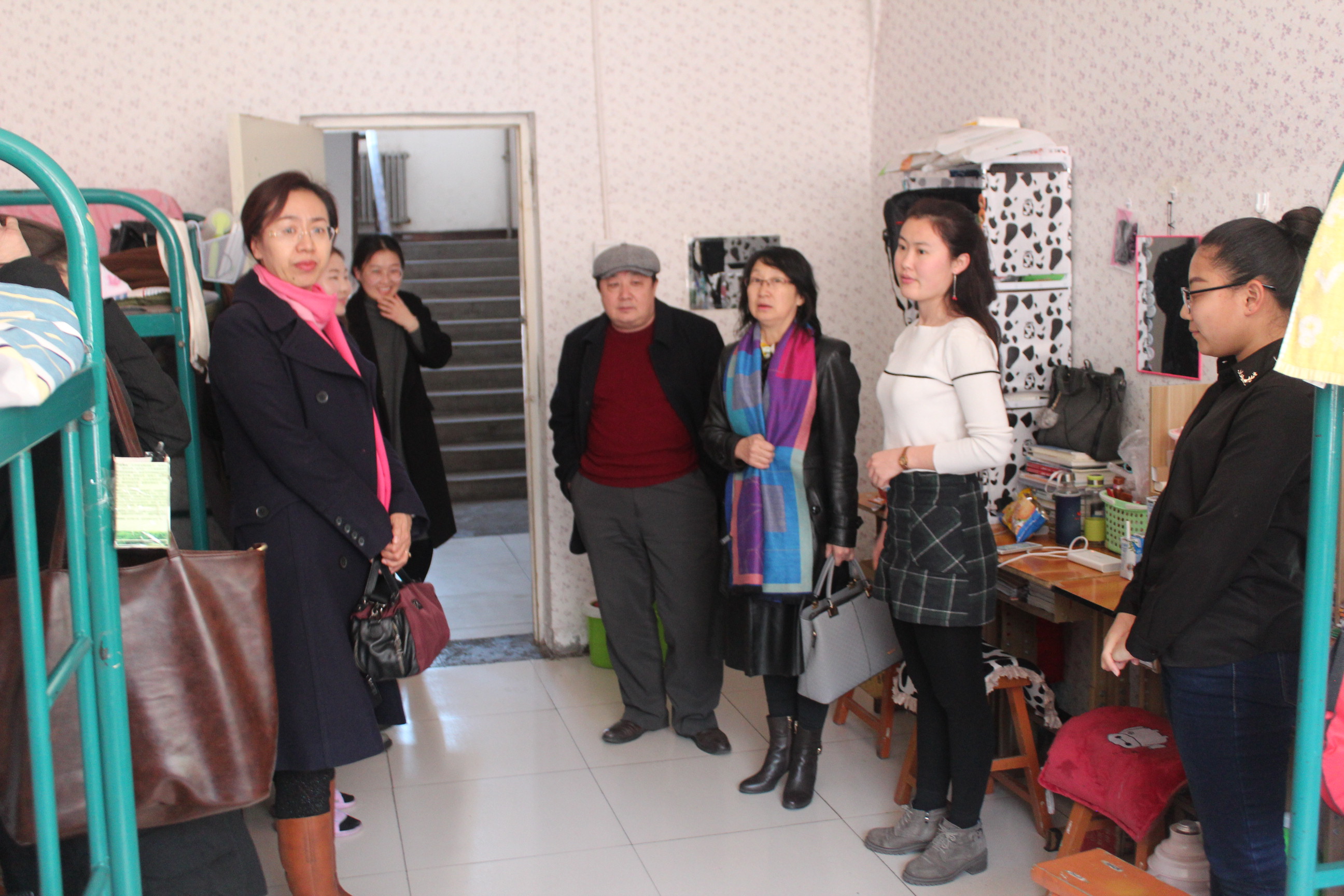 学生宿舍,对学生进行慰问,并对宿舍安全进行检查。
