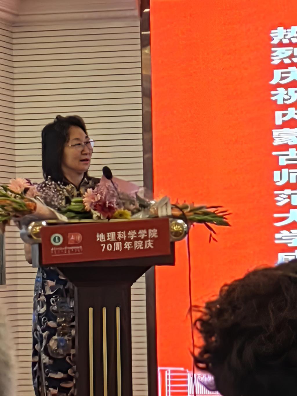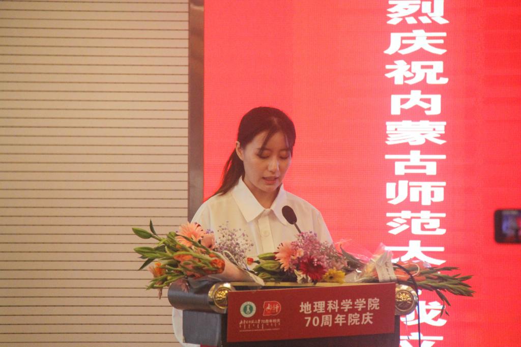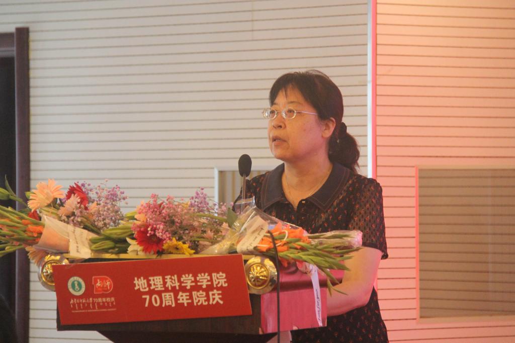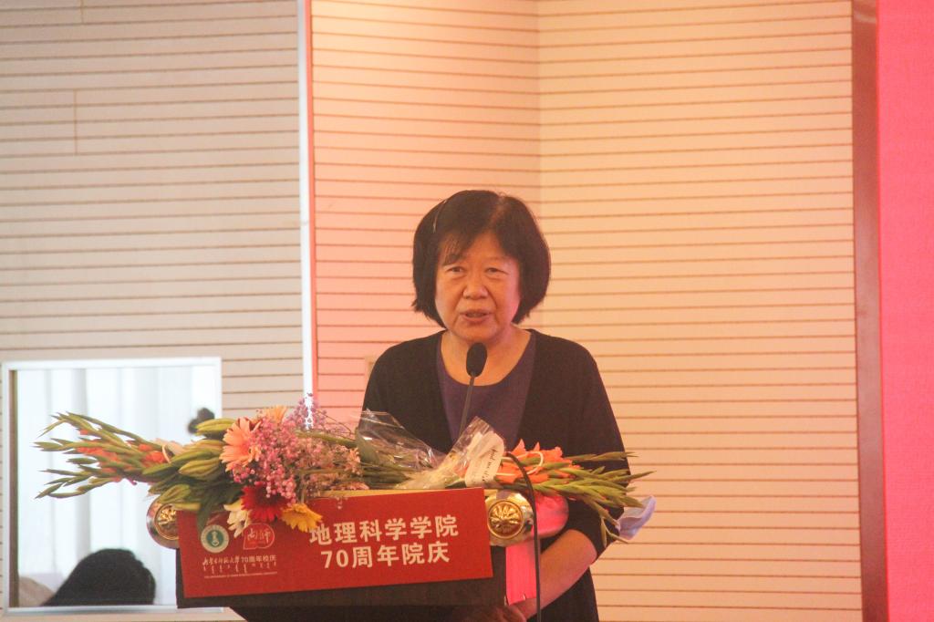 北京大学城市与环境学院历史地理研究中心教授,博士研究生导师、77级校友韩茂莉教授作为知名校友上台发表了感想,她回忆了当年授业解惑的老师在学习生活上的帮助,表达了对学院的怀念和感激之情,深情的表示会永远记得师大地科院的培育之情。