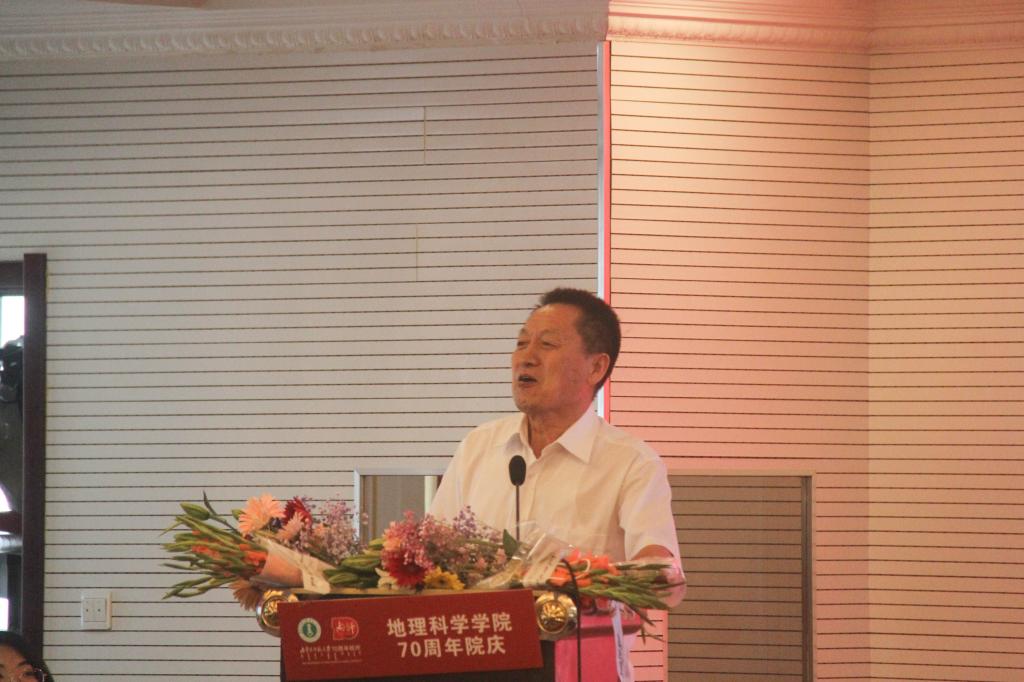 退休教师代表苏根成教授回忆了自己在地科院的教书育人时光,激动地表示1952年成立的史地科经过多年的努力奋斗和不懈精进,终于在完成了一代代地理人的梦想,成功获得了地理学一级学科博士学位授权点,这是可歌可泣的、值得敬佩的成绩!在七十周年之际,每个地理人都应该感到光荣和骄傲!
