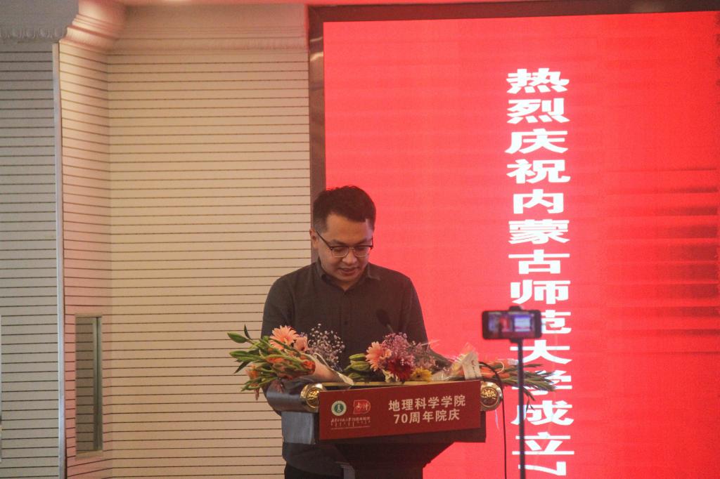 紧接着,北京师范大学地理科学学部教授、中国科学院杰出科技成就奖获得者、校友代表王帅教授发表感言,深情地回顾了在学校的学习时光和重回校园感受到的变化,讲到地理学既是古老又是现代科学的前沿,学院学科专业发展势头当下正好,希望学弟学妹们珍惜机会,掌握地理学的系统思维,抓住关键要素,全面发展!