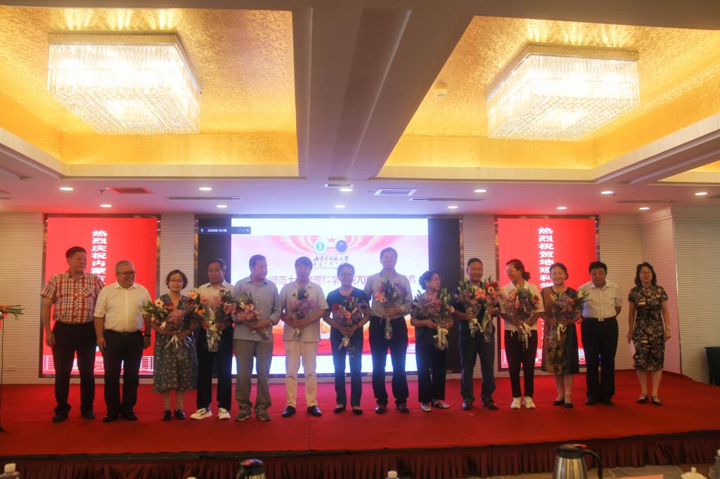 退休老教师和在学院工作35年以上的教师分别走上主席台,接受青年学生代表的献花!