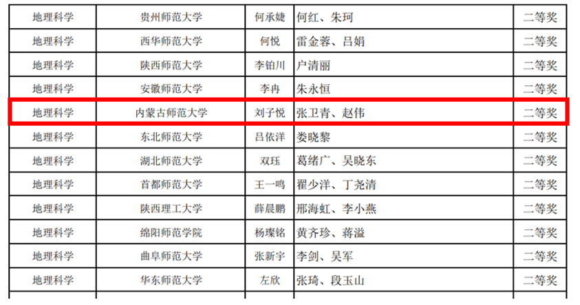 由张卫青、赵伟老师指导的2019级地理科学定向班刘子悦同学荣获地理科学组二等奖。