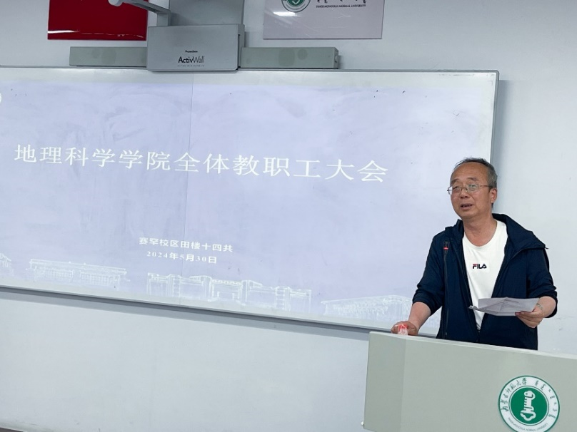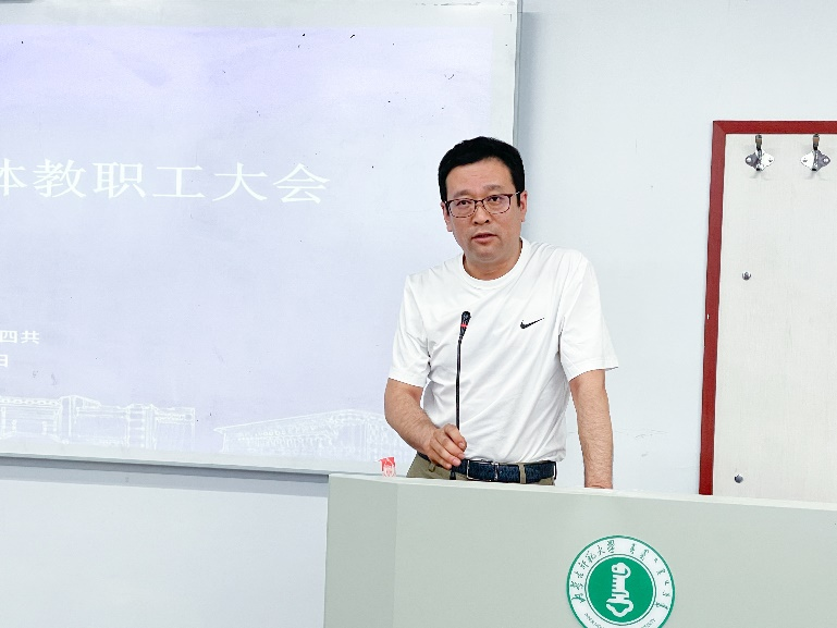 全体教职工大会在田楼14共教室顺利召开。此次会议重点通报了近期学院相关工作情况,并对后续各项工作安排进行详细部署。会议由李雨薇书记主持,学院领导班子和全体教师参加会议。