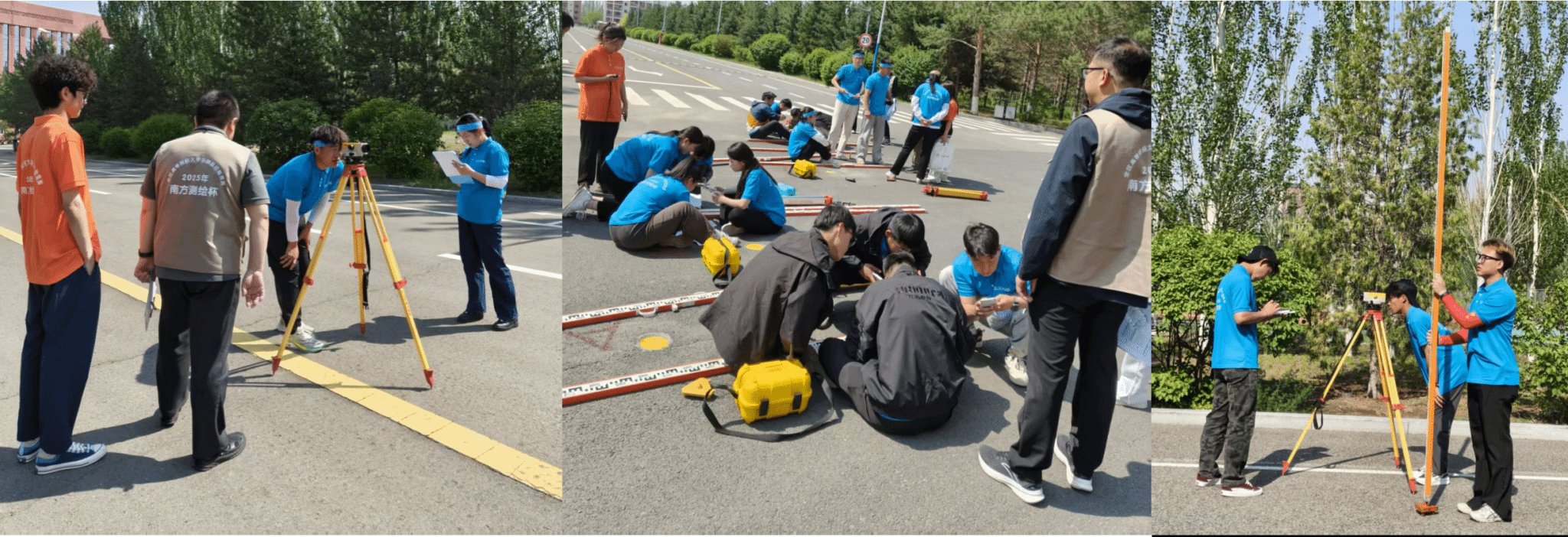 盛乐校区成功举办。来自全区14所高等院校的22支线下参赛队(我校2个参赛队)和多支线上虚拟仿真竞赛队同场竞技,展现测绘学子的专业风采。本次竞赛项目丰富,线下必选项目为四等水准测量和一级导线测量,线上选择项目包括虚拟仿真数字测图、无人机航测虚拟仿真、机载激光雷达虚拟仿真。