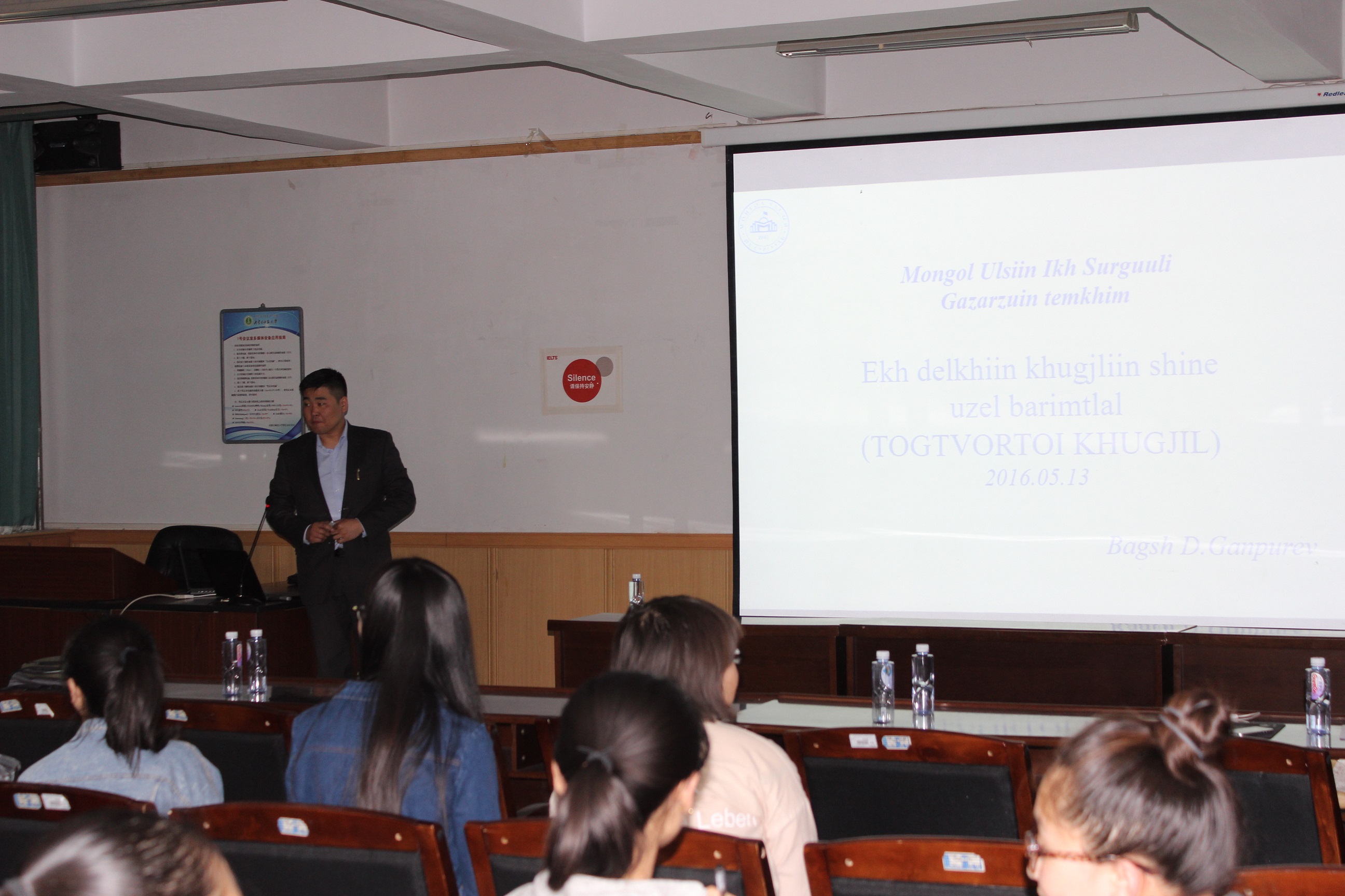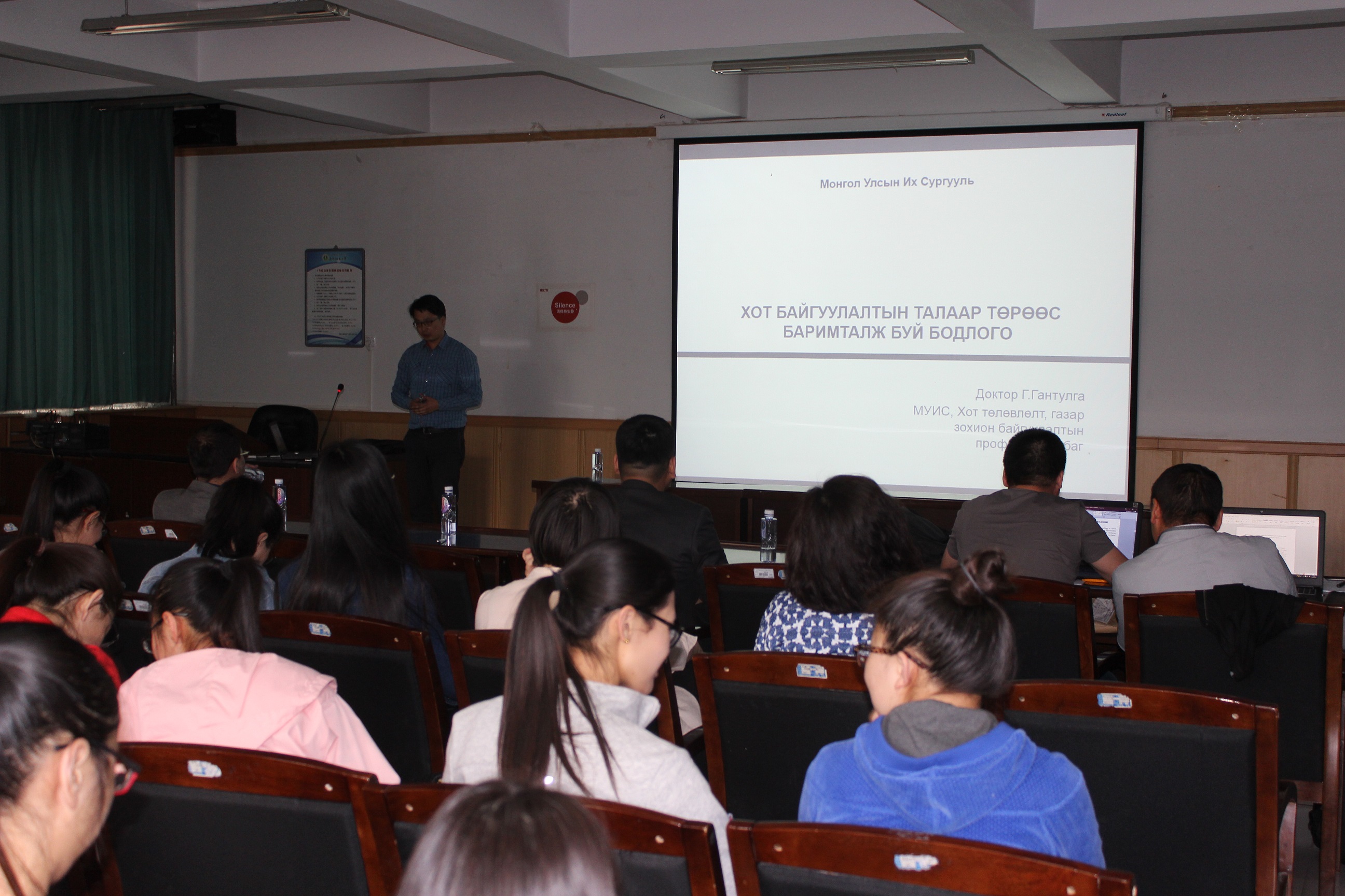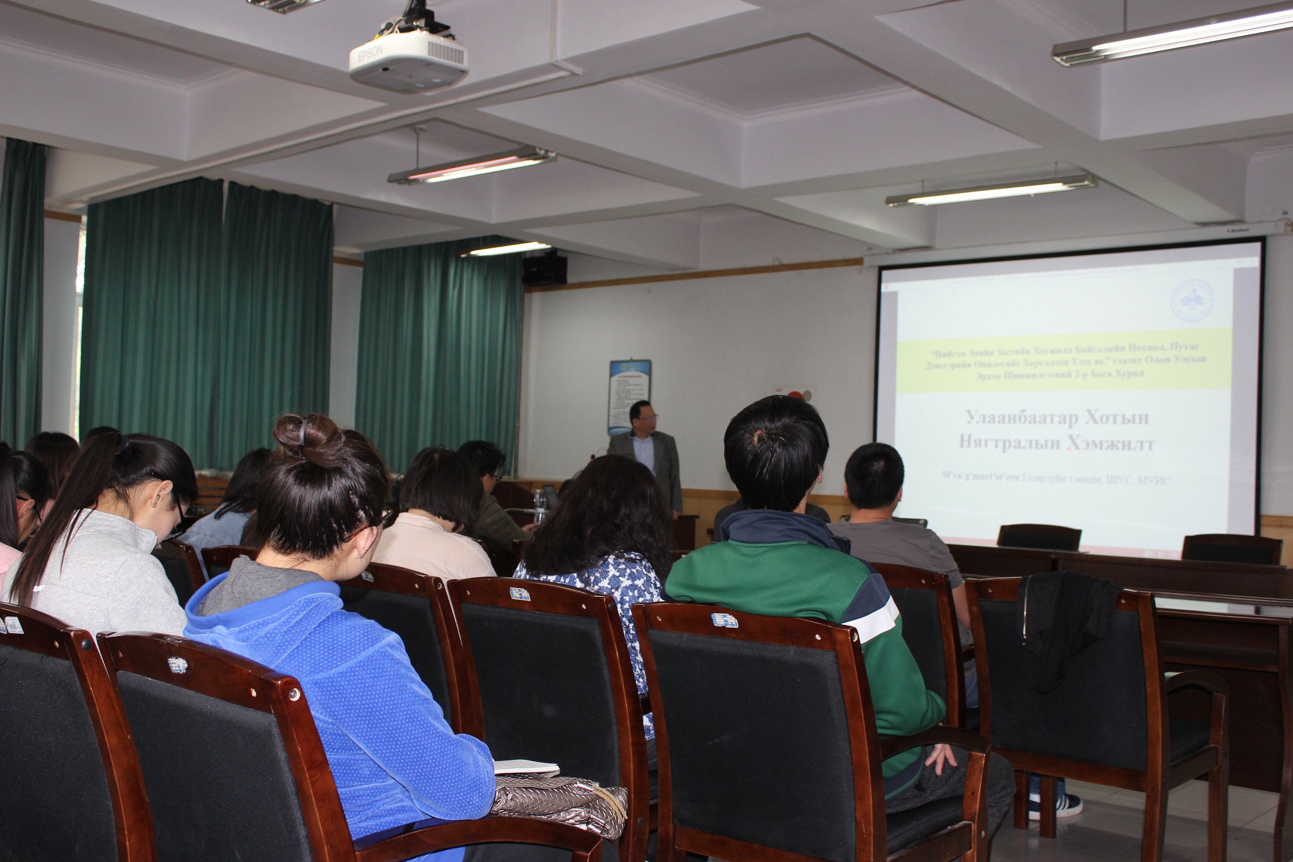 应嘿嘿漫画 的邀请,2016年5月12至16日,蒙古国国立大学米嘎玛尔斯仁、钢图拉嘎、钢普茹布副教授来我校进行学术交流。嘿嘿漫画 的本科生、硕士生及部分老师聆听了讲座。三位专家以最新的视角和高水平的研究方法讲述了蒙古国城市化现状、存在问题及其解决方法。通过此次学术交流,加深了我校师生对蒙古国的了解,为两国今后深层次开展合作奠定了基础。