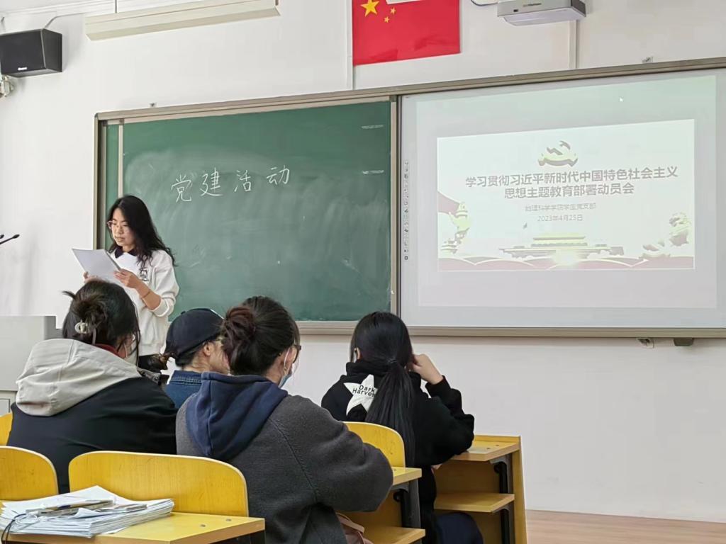 支部书记孙小雅组织学习了《关于深入开展学习贯彻习近平新时代中国特色社会主义思想主题教育的实施方案》(内师党发〔2023〕10号)文件精神,并动员部署了学生党支部接下来理论学习、调查研究、实践教育、整改整治方面的相关安排。强调支部全体党员要充分认识开展主题教育是统一全党思想意志行动,始终保持党的强大凝聚力、战斗力的必然要求;是推动全党积极担当作为,不断开创事业发展新局面的必然要求;是深入推进全面从严治党,以党的自我革命引领社会革命的必然要求。要坚持学思用贯通、知信行统一,把习近平新时代中国特色社会主义思想转化为坚定理想、锤炼党性和指导实践、推动工作的强大力量,使全党始终保持统一的思想、坚定的意志、协调的行动、强大的战斗力,努力在以学铸魂、以学增智、以学正风、以学促干方面取得实实在在的成效。
