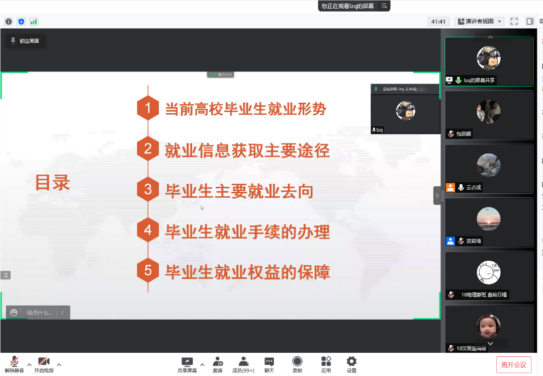 于2022年3月17日下午特邀我校招生就业处就业市场部部长刘在青老师开展线上就业政策讲座,会议由嘿嘿漫画